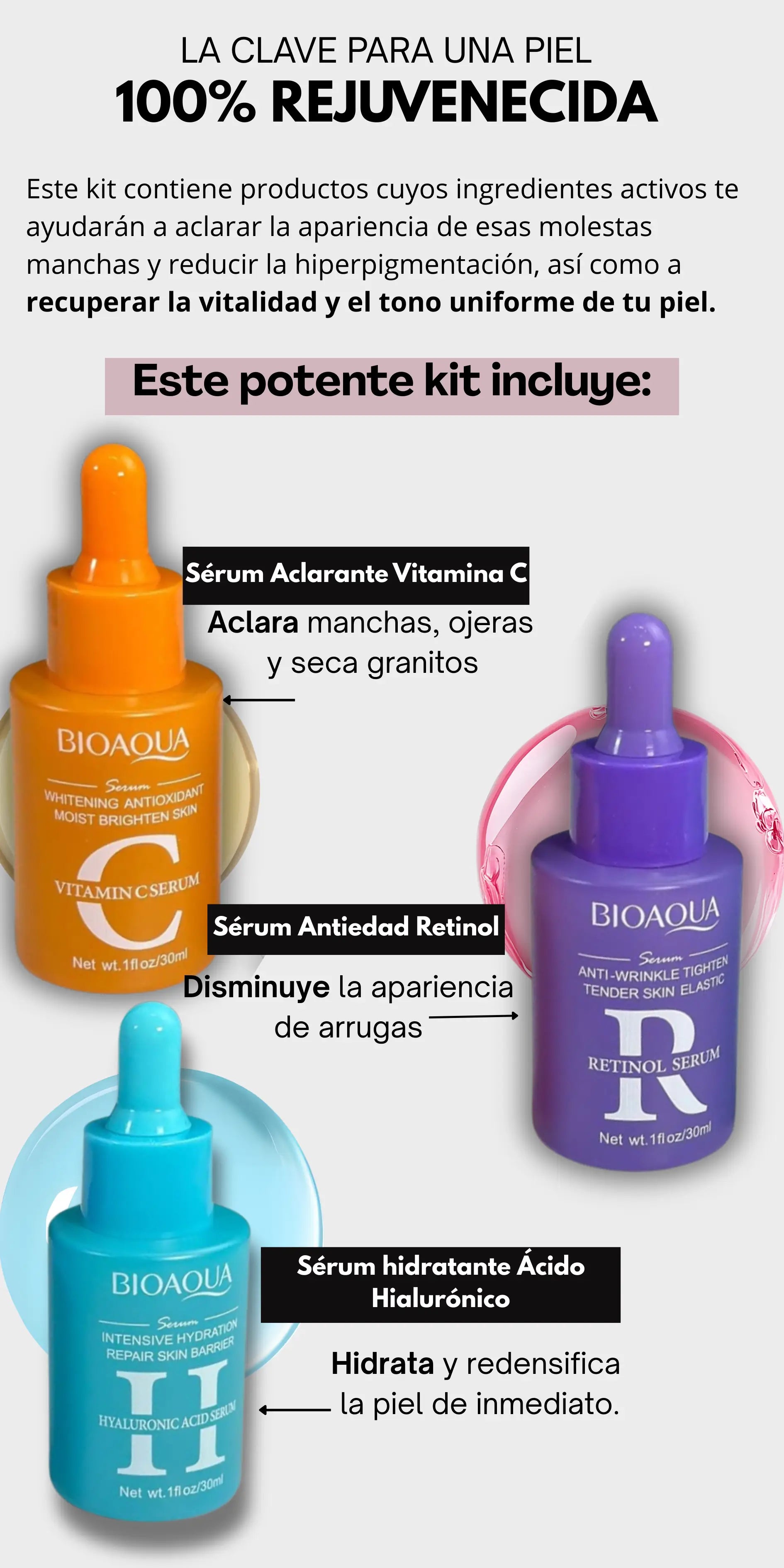 El Kit Despigmentante Intensivo combina antioxidantes, renovadores celulares y despigmentantes clínicamente comprobados para atacar el problema en cada fase del proceso
